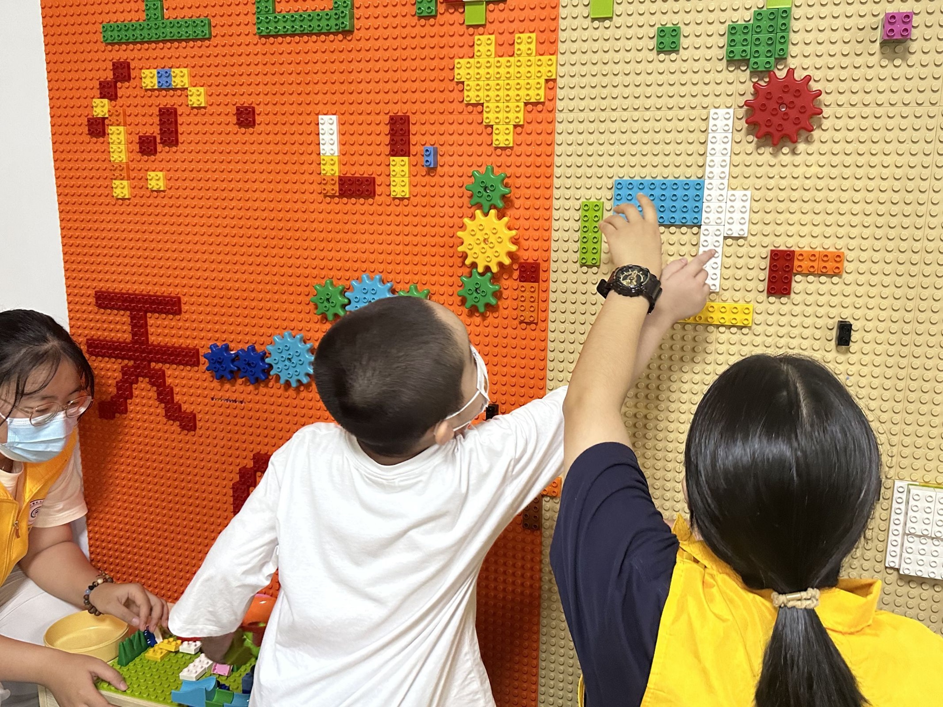 在公益课堂开始前,志愿者们陪着小朋友搭建起一条积木轨道,并和小朋友们一起玩躲猫猫、抢凳子、玩象棋等小游戏,这个过程中欢声笑语此起彼伏,久久回荡。