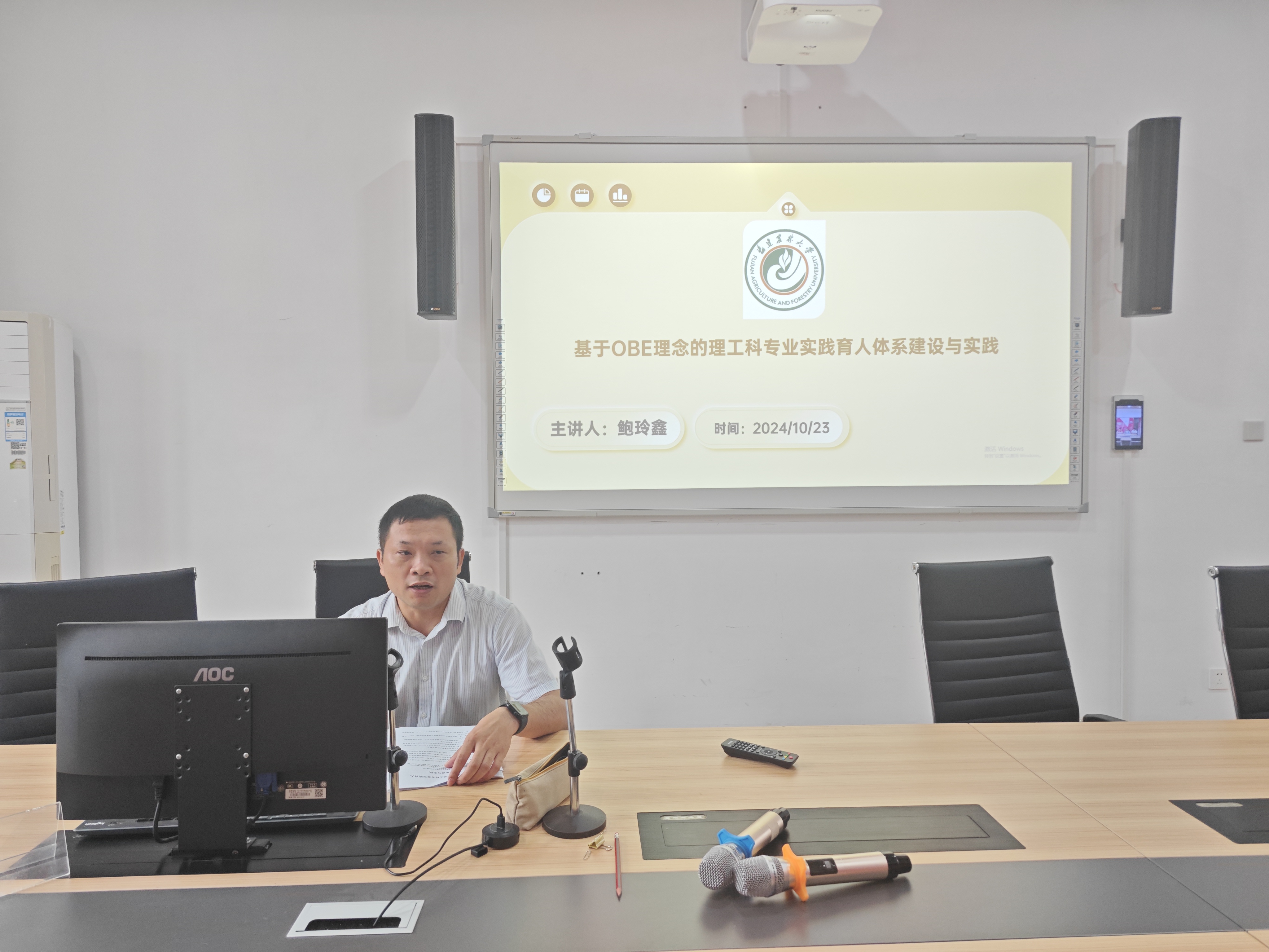 鲍玲鑫教授与在场师生分享了对OBE理念的理解,他指出,OBE理念改变了对于教学的传统认识,对引导和促进专业建设与教学改革、保障和提高人才培养质量至关重要。鲍教授结合自身工作实际,为师生介绍了课程设计、综合实践、毕业实习“阶梯式”实践教学体系构建的思路与具体做法。接着,鲍教授分享了福建农林大学计算机与信息学院在科创方面的工作理念,通过实例阐述了如何使创新创业、学科竞赛并阶发展,助力创新性人才培养。最后,鲍教授强调了实践基地、科研平台协同促建的重要性。作为理工类学院,应该大力促进校外实习基地建设,规范实践教学管理,推进校企深度合作,完善专业人才培养方案,实现信息互通、资源共享、人才共育。