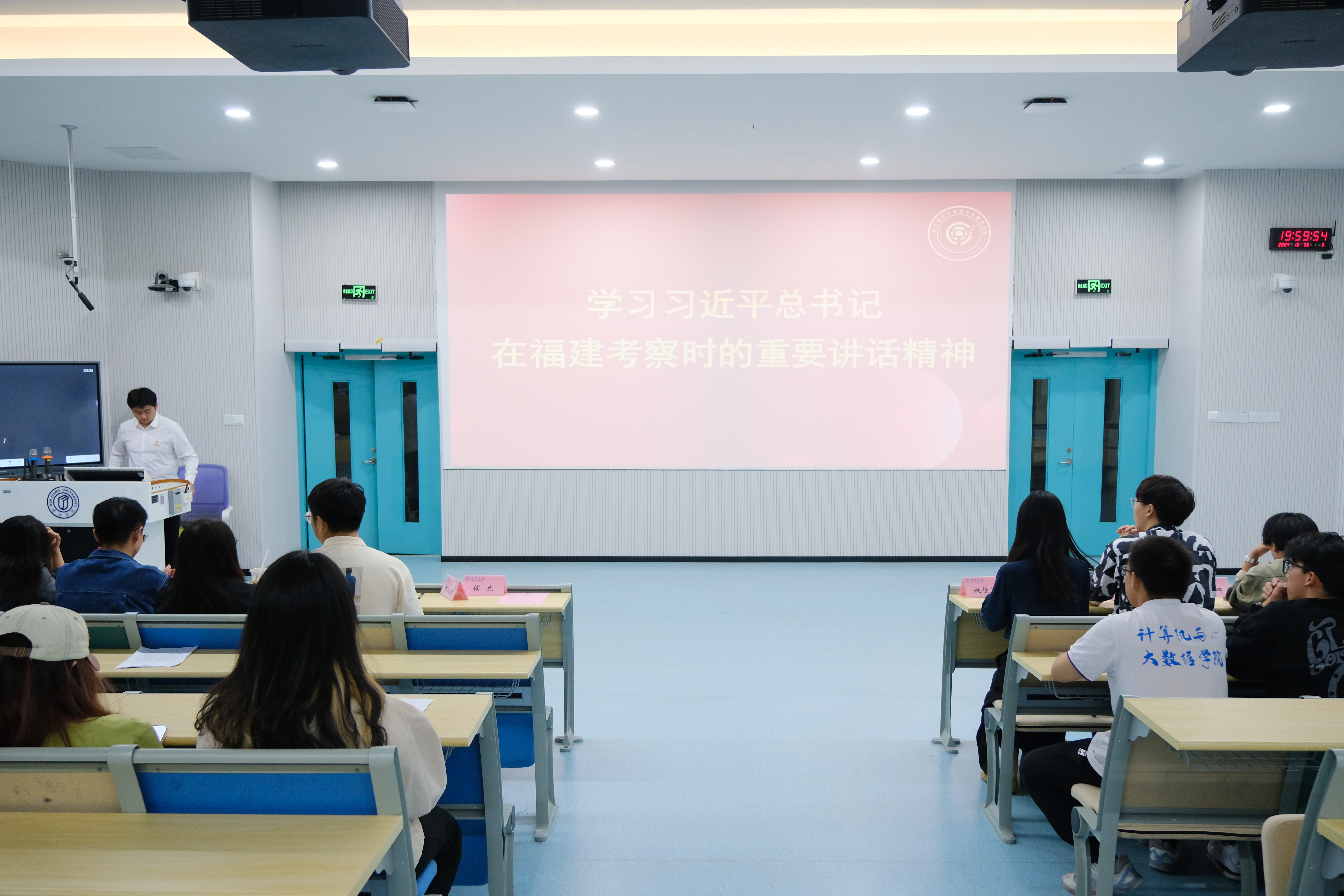 随后,全体两委干部共同学习了习近平总书记在福建考察时的重要讲话精神,青年志愿者服务中心主任帅瑞齐同学代表发言,作为学生干部,要抓准“学生”的站位,担负起“干部”的责任,以脚踏实地的态度,服务好广大同学,学好专业本领,积极参与国家建设,把个人理想融入国家发展,为中华民族伟大复兴贡献青春的智慧和力量。