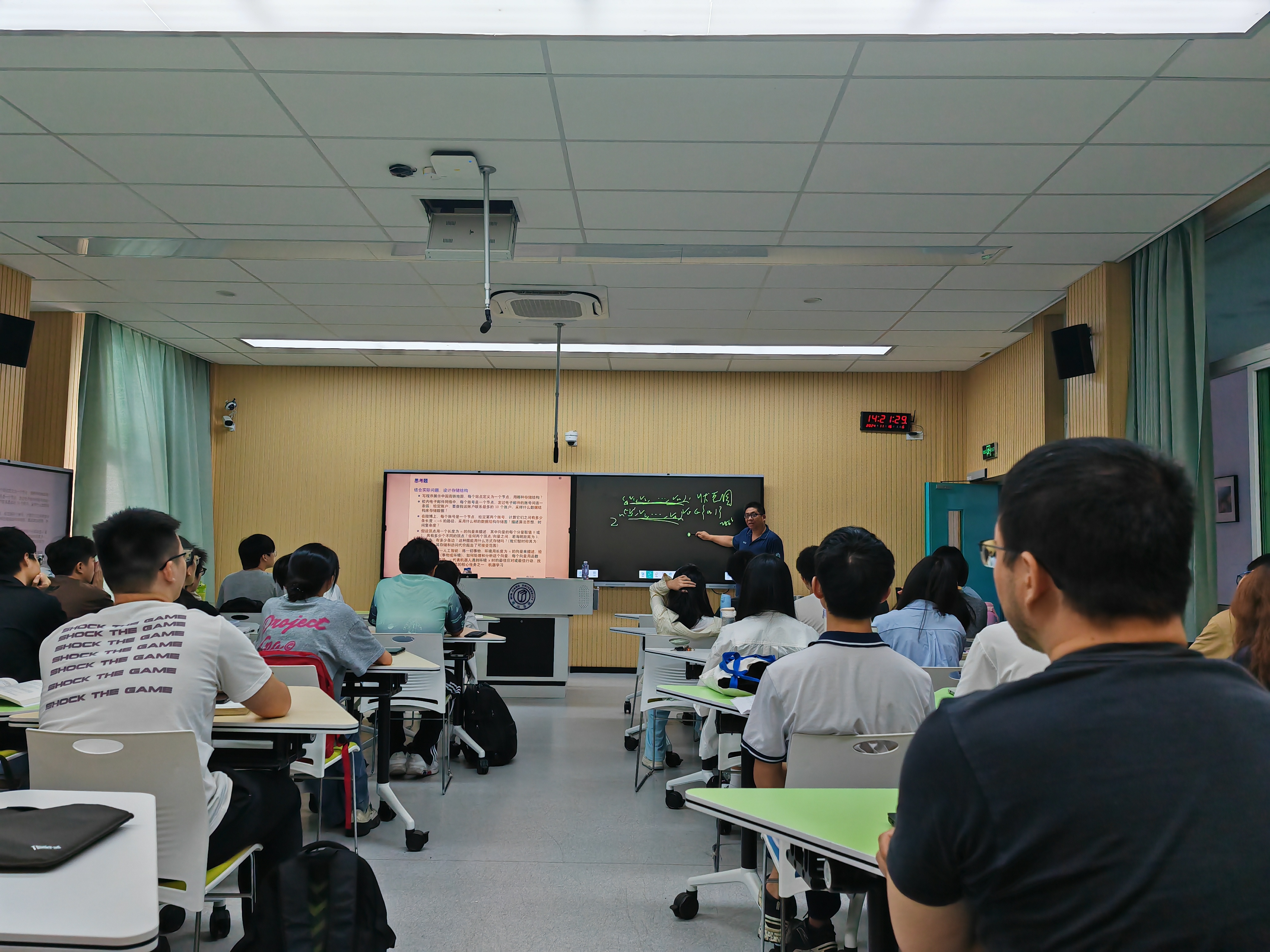 本次课程共计四个课时,李教授从现实问题出发,深入浅出地讲解了图的基本概念、广度优先搜索和遍历、以及深度优先搜索和遍历等内容,并结合实际案例为同学们展示了这些算法在图相关问题中的具体应用,以及如何将实际问题建模成图并用对应算法求解。课堂上,李教授通过生动的实例与学生们进行频繁互动,解答了同学们的问题,激发了大家对图的浓厚兴趣,为未来的学习打下了扎实的基础。