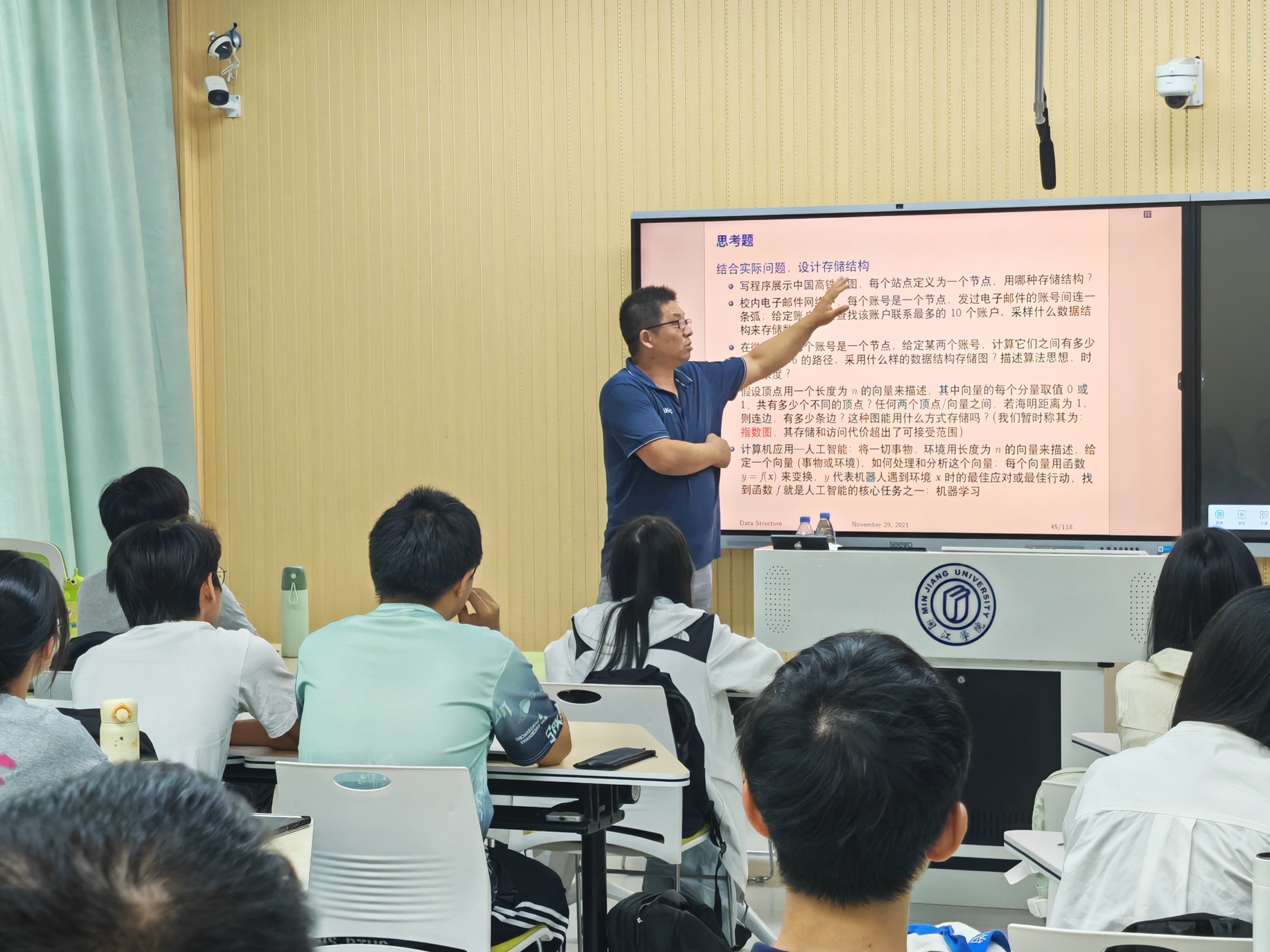 11 月 16 日下午,中国科学技术大学李金龙教授围绕“数据结构中图的搜索与遍历”内容为实验班同学们进行现场示范授课。校长教学事务特别助理许胤龙教授亲临现场指导,百合小说 领导、各系主任和数据结构课程组教师到现场学习交流,旨在借鉴先进的教学理念和方法,提升整体教学水平。