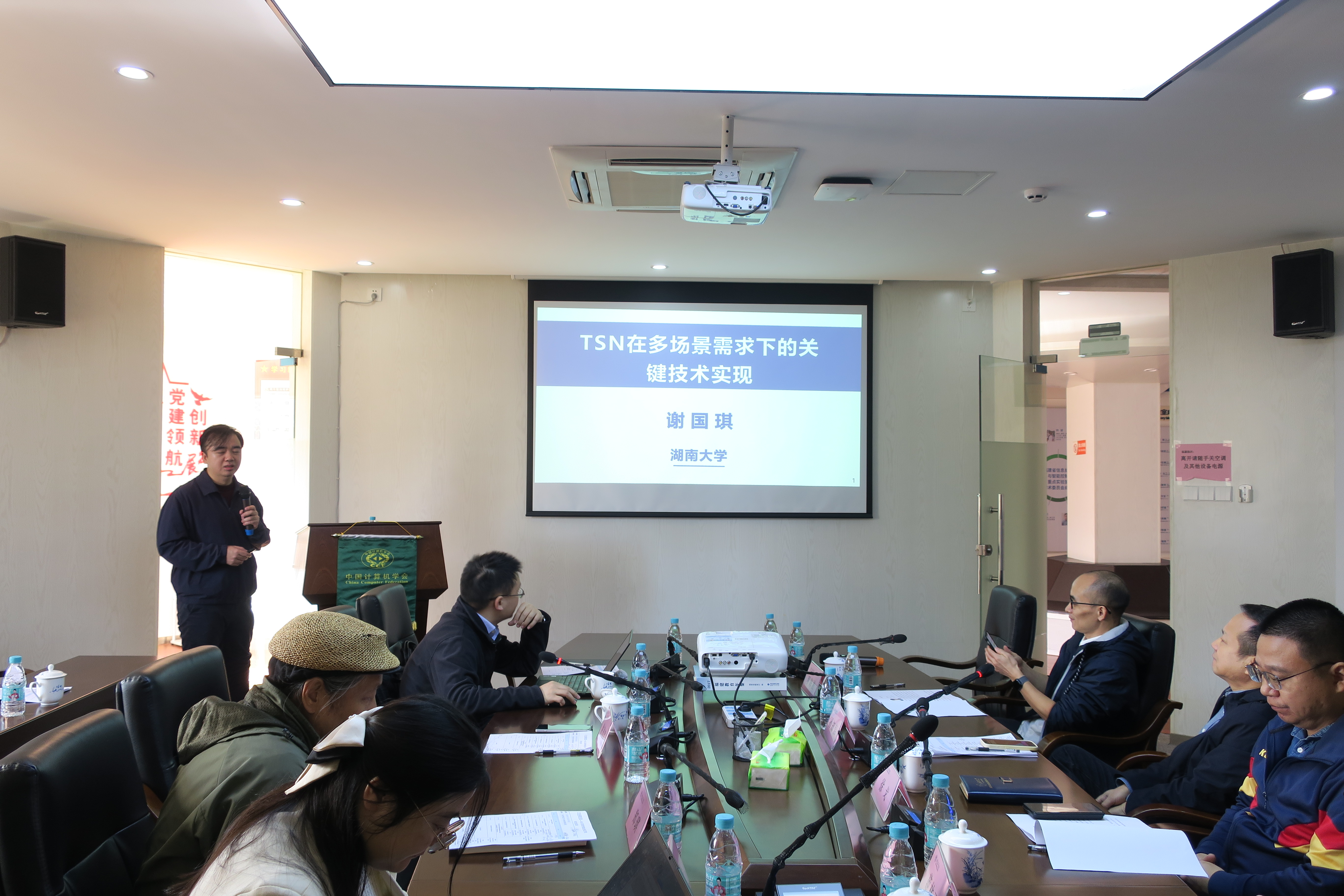CCF嵌入式系统专委秘书长湖南大学谢国琪教授致开幕辞,并做了题为《TSN在多场景需求下的关键技术实现》的精彩报告,报告介绍了如何实现TSN对国产操作系统及实时操作系统的适配与支持,以及TSN在国产平台上的一些关键技术实现,包括时间同步、switch配置、路由规划及流量收发及资源动态调度等核心功能,并就相关问题开展探讨