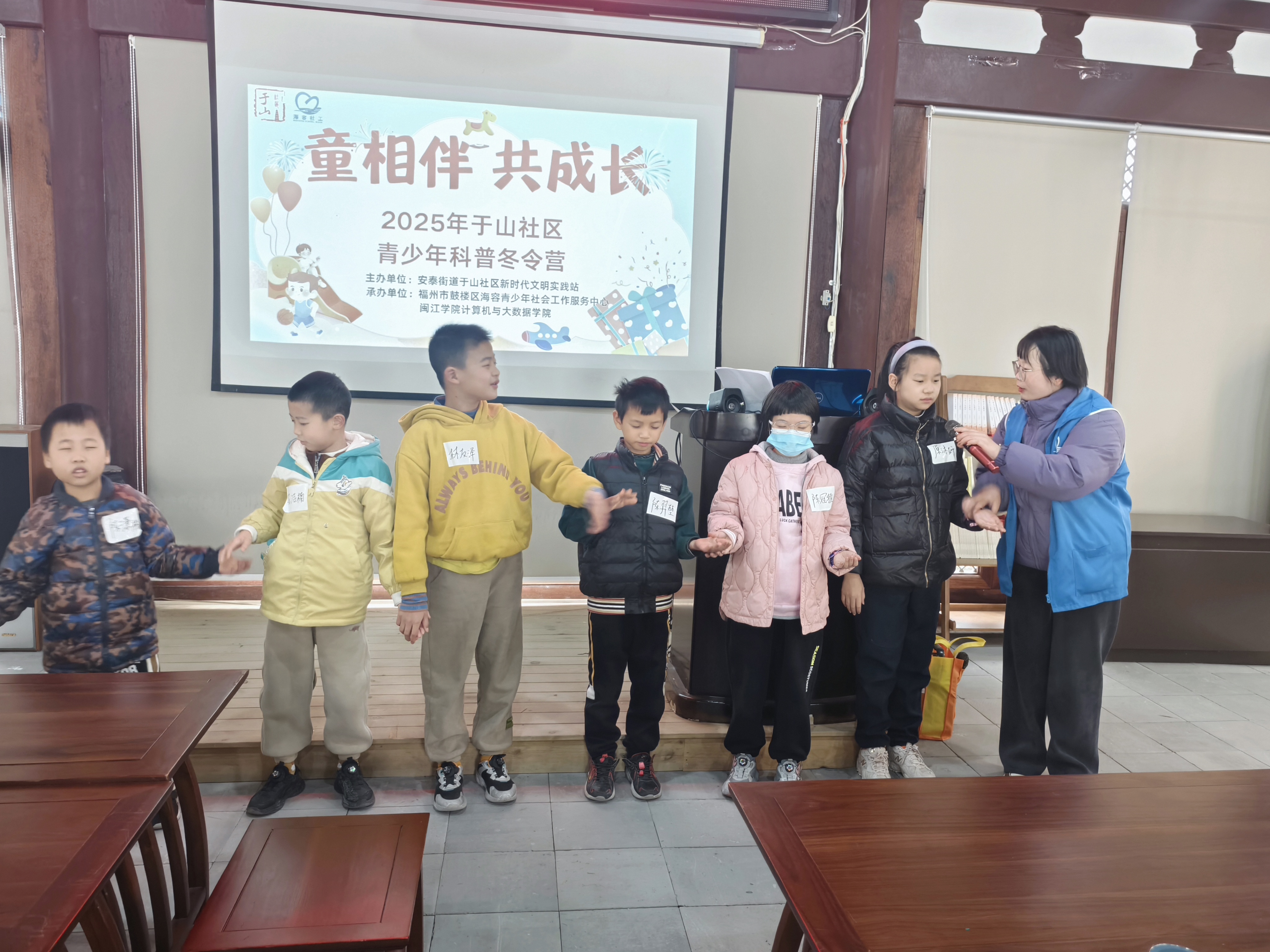 2024年1月15日清晨,阳光明媚,于山社区勉斋精舍活动中心迎来了“童相伴 共成长”青少年科普主题冬令营的首日活动。本次活动由安泰街道于山社区新时代文明实践站主办,福州市鼓楼区海容青少年社会工作服务中心与百合小说 联合承办,学院共组织8名志愿者组成实践团队参与本次活动。