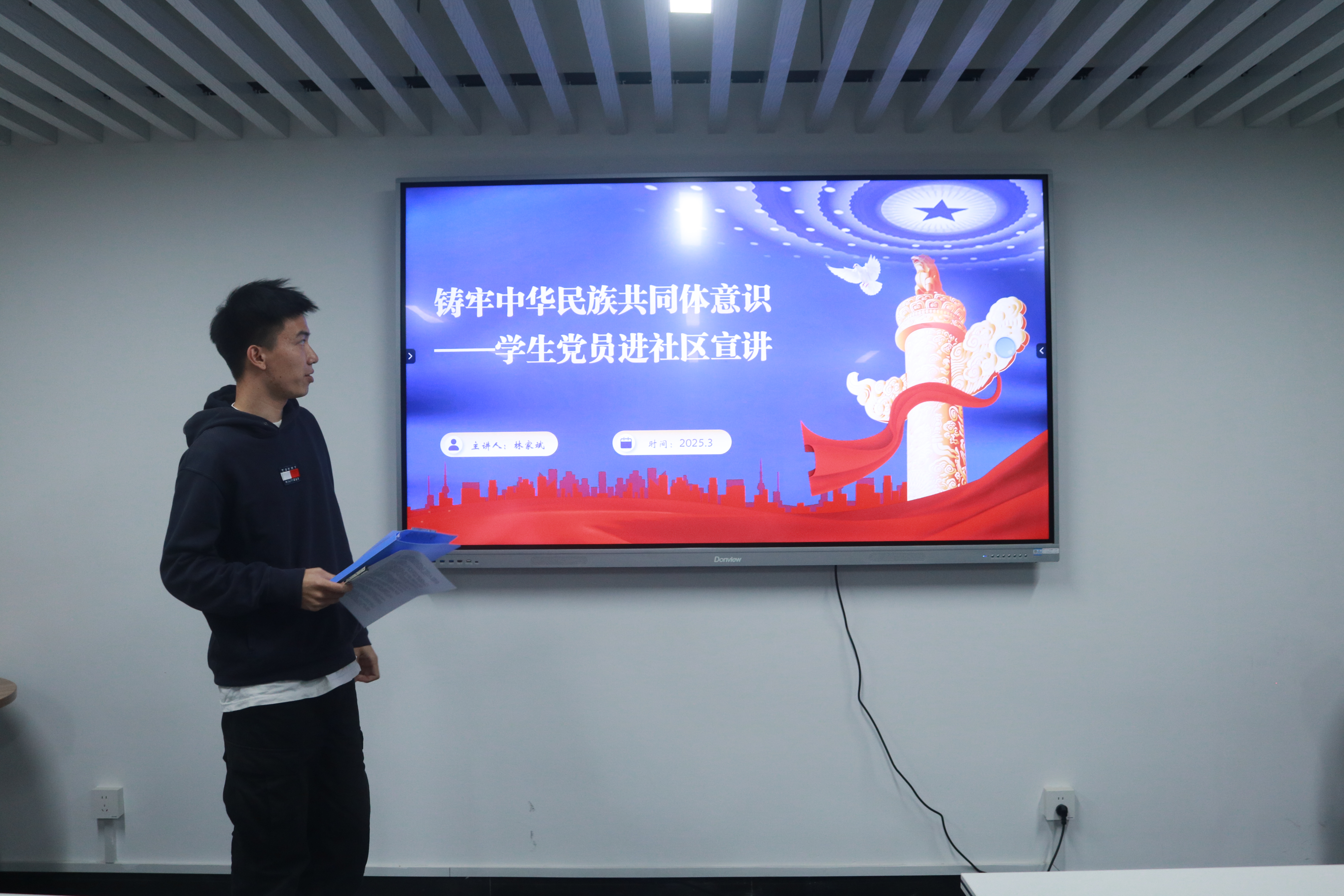 宣讲团成员、学生党员林家斌同志以“铸牢中华民族共同体意识”为题进行宣讲,他回顾历史,带领观众们看到各民族在共同奋斗中铸就辉煌;从现实出发,明确铸牢中华民族共同体意识对维护国家稳定、促进民族进步的重要意义,鼓励新时代青年确立正确的民族观念,从身边小事做起自觉维护民族团结,为实现中华民族伟大复兴的中国梦贡献力量。