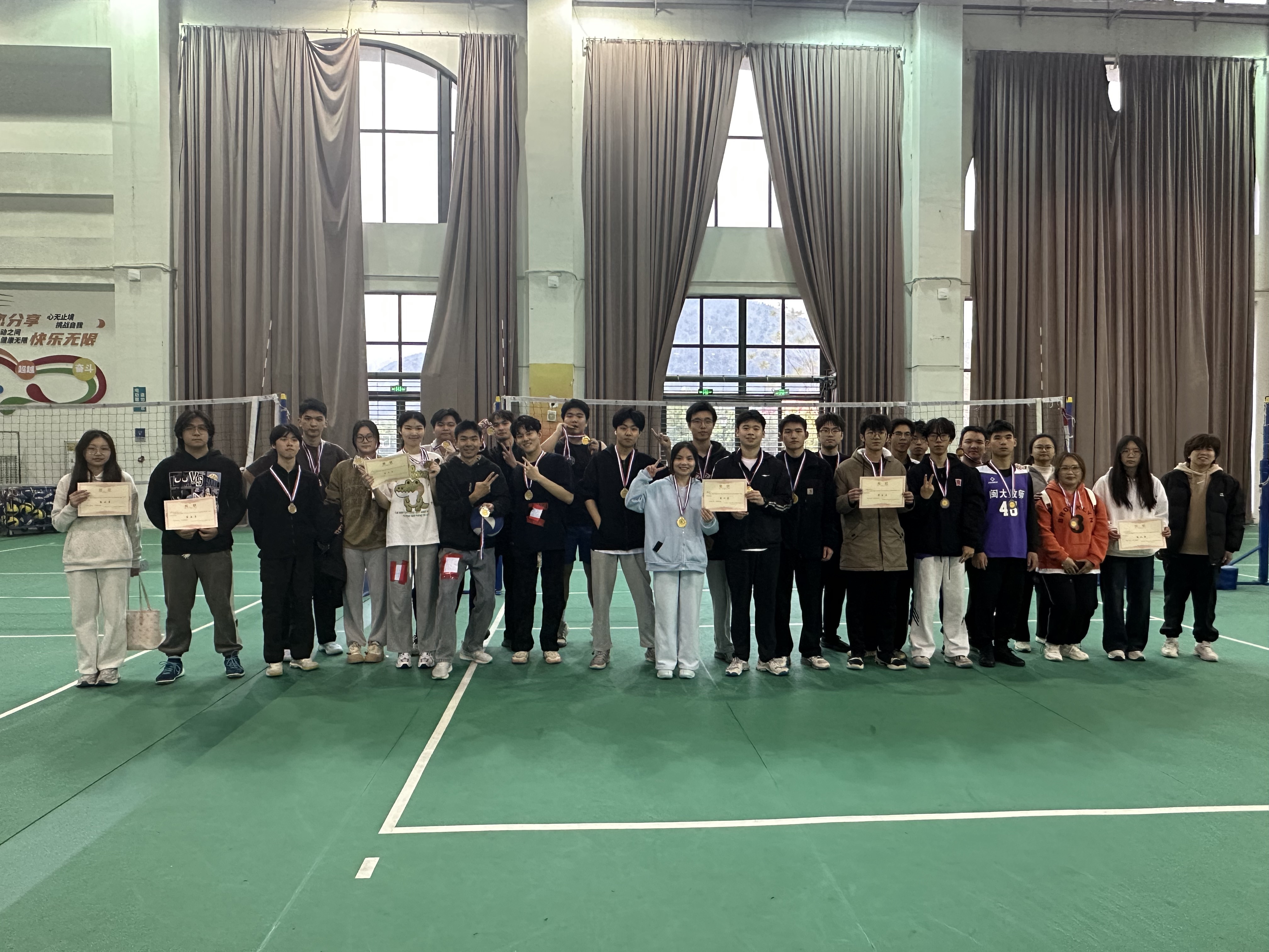 最终,随着裁判一声哨响,气排球比赛的精彩对决落下帷幕。赛事虽终,热爱不止,拼搏不息。愿同学们将赛场上的团结默契与顽强斗志,融入学习、生活与成长之路,在未来的舞台上,继续突破自我,书写更绚烂的青春篇章!