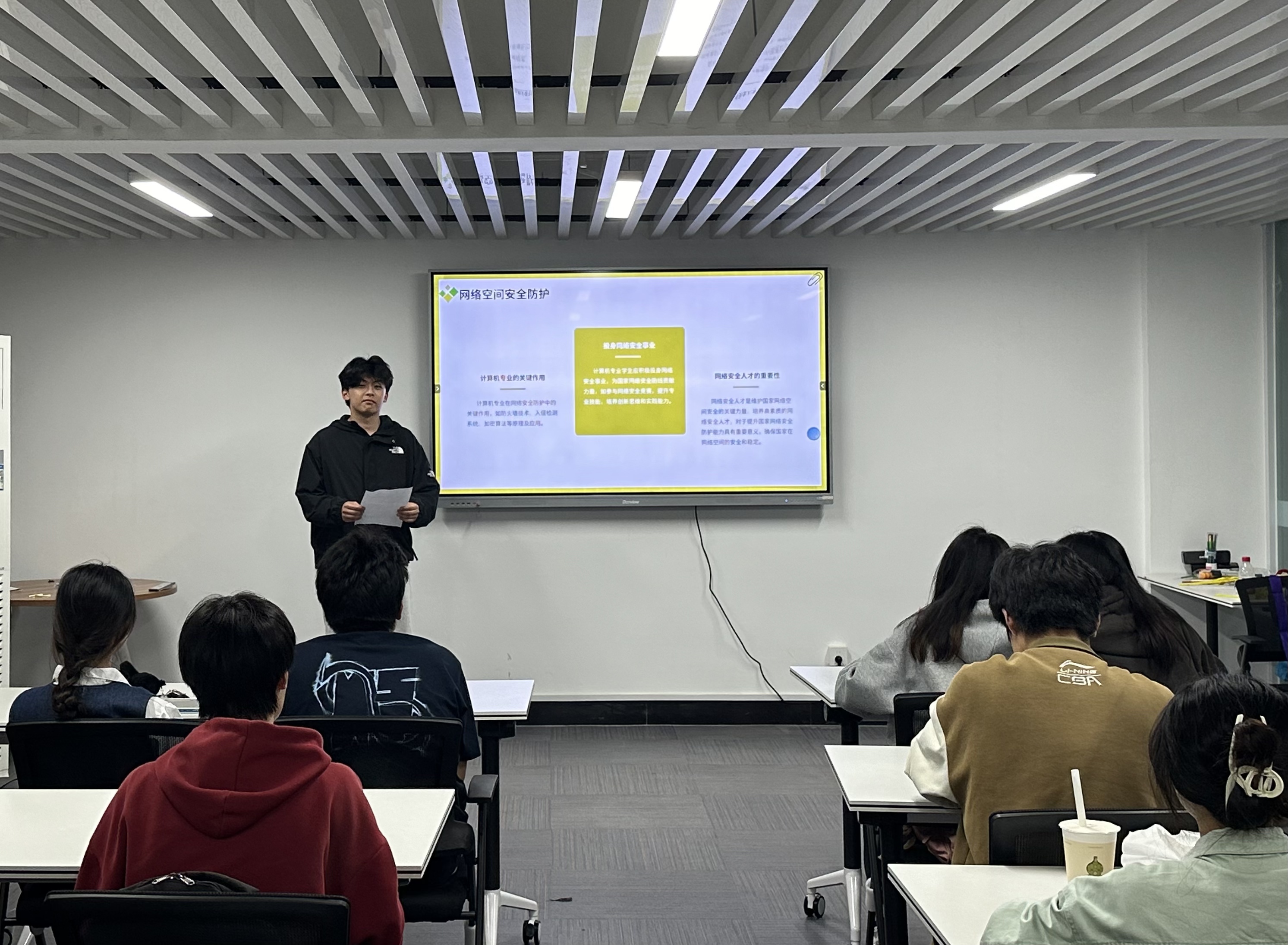 宣讲会上,研习社成员们以“总体国家安全观”为主题展开宣讲。通过深入剖析相关概念,挖掘总体国家安全观在新时代的重要内涵与实践价值。研习社成员们分享网络空间安全防护要点、讲解总体国家安全观架构、解读国家安全“四梁八柱”体系,带领现场听众们深入感受各领域安全保障对国家稳定发展的关键意义。