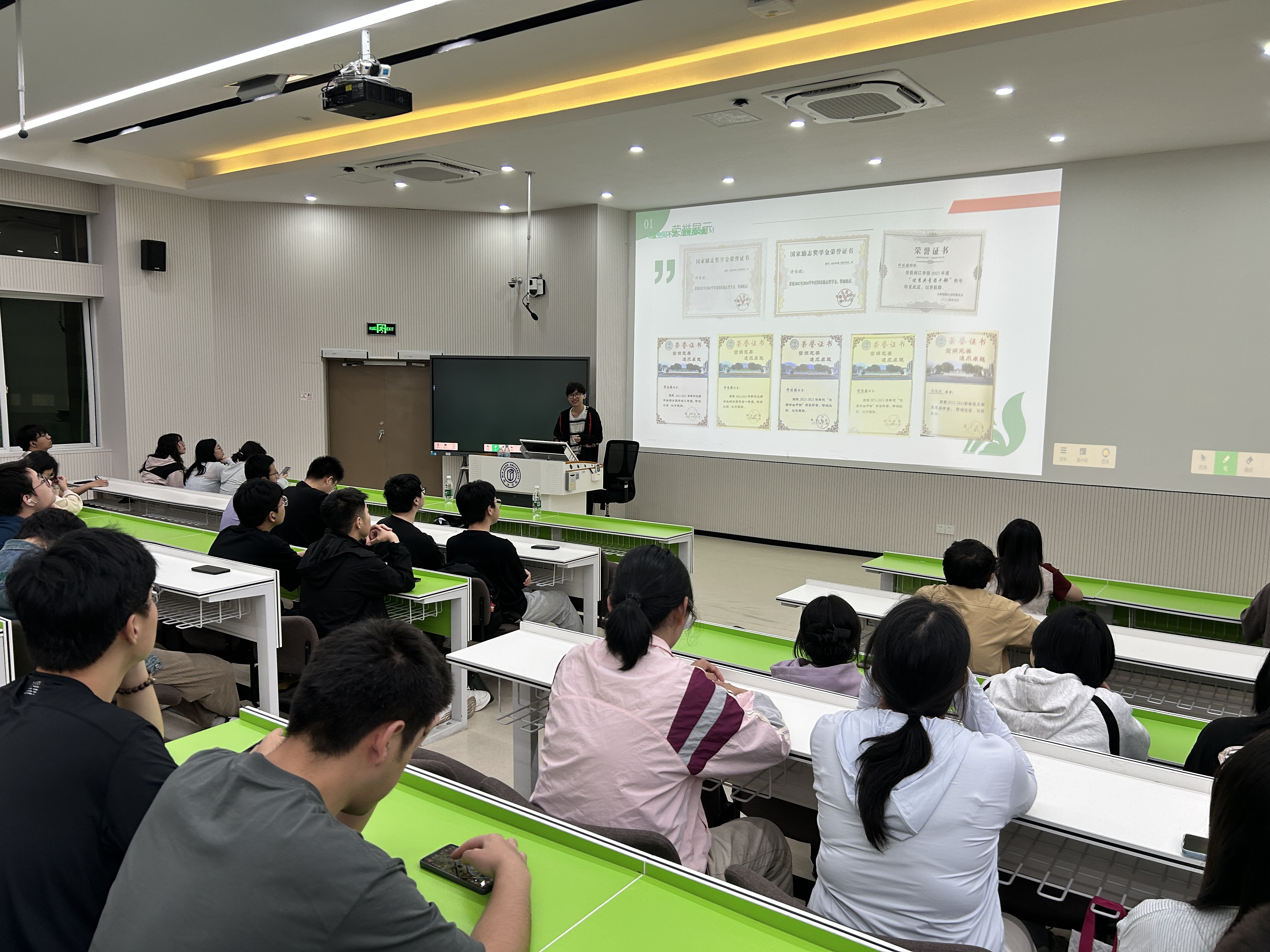 许佳歆同学,国家励志奖学金获得者、2022 级软件工程专业学生。他向学弟学妹们展示了他的学习经验与竞赛经历。每一次竞赛都是一场知识与智慧的较量,是对自己专业知识的深度挖掘和拓展。作为大学生要深知“实践出真知”的道理,注重培养自身的创新精神和实践能力。在当前“大众创业、万众创新”的时代背景下,他建议学弟学妹们积极参加相关竞赛活动,不断挖掘自己的潜力,拓展自己的边界,让自己的专业竞争力在一次次的锤炼中不断提升。