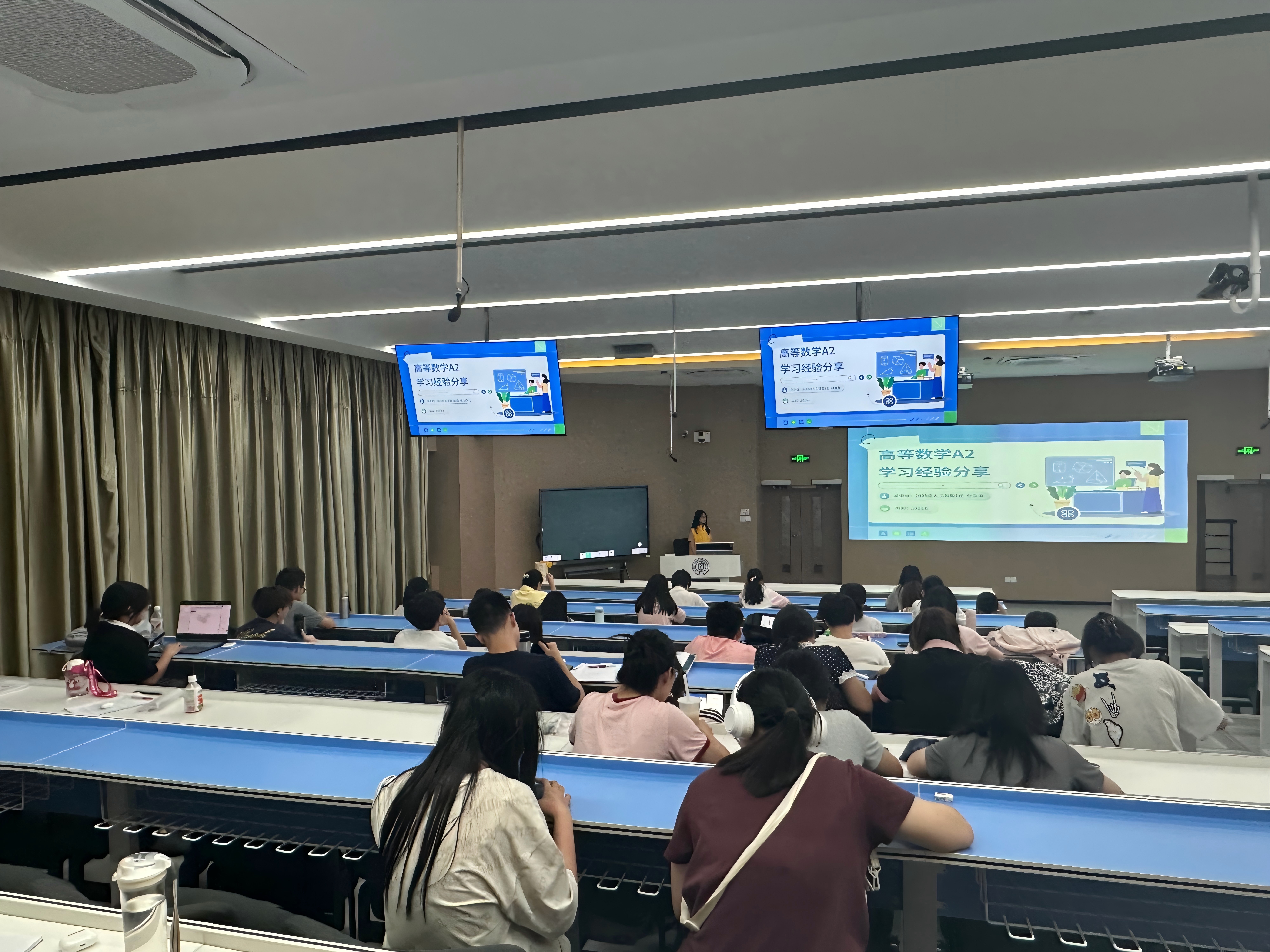 本次高等数学朋辈微讲堂由在该学科成绩优异、有着丰富学习经验的林文希同学担任主讲人。活动开始前,现场座无虚席,不少同学提前到达,准备好笔记本和学习资料,期待这场知识盛宴。