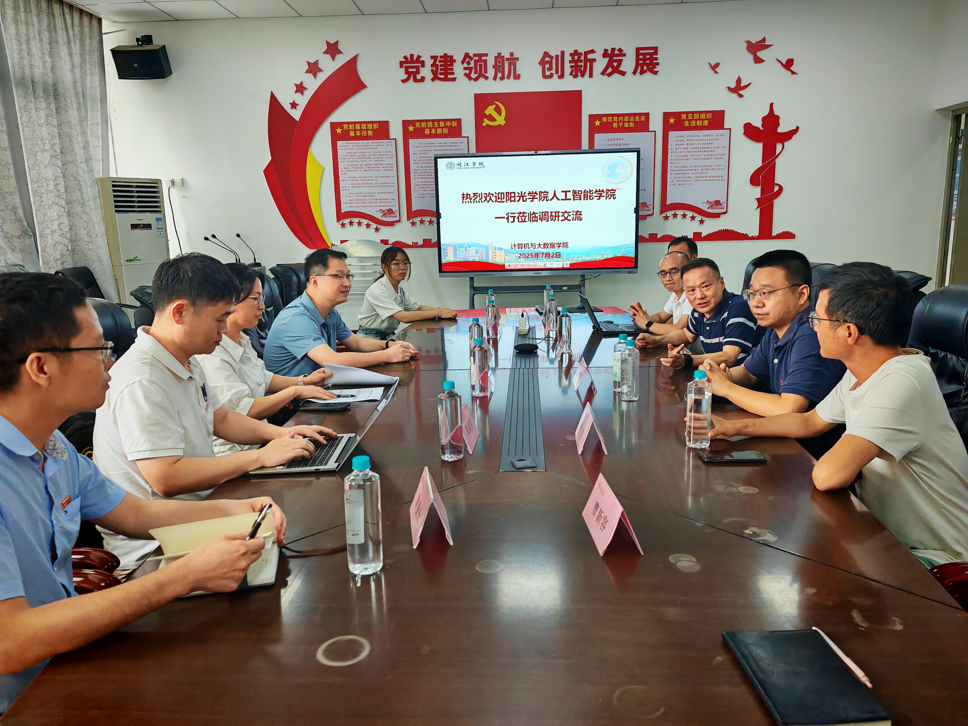 2025年7月2日,阳光学院人工智能学院院长黄风华一行到访百合小说 开展专题调研交流。百合小说 院长孙知信主持座谈,副院长徐戈、罗海波,院长助理林文,办公室主任王璟参与座谈,双方围绕新工科建设展开研讨。