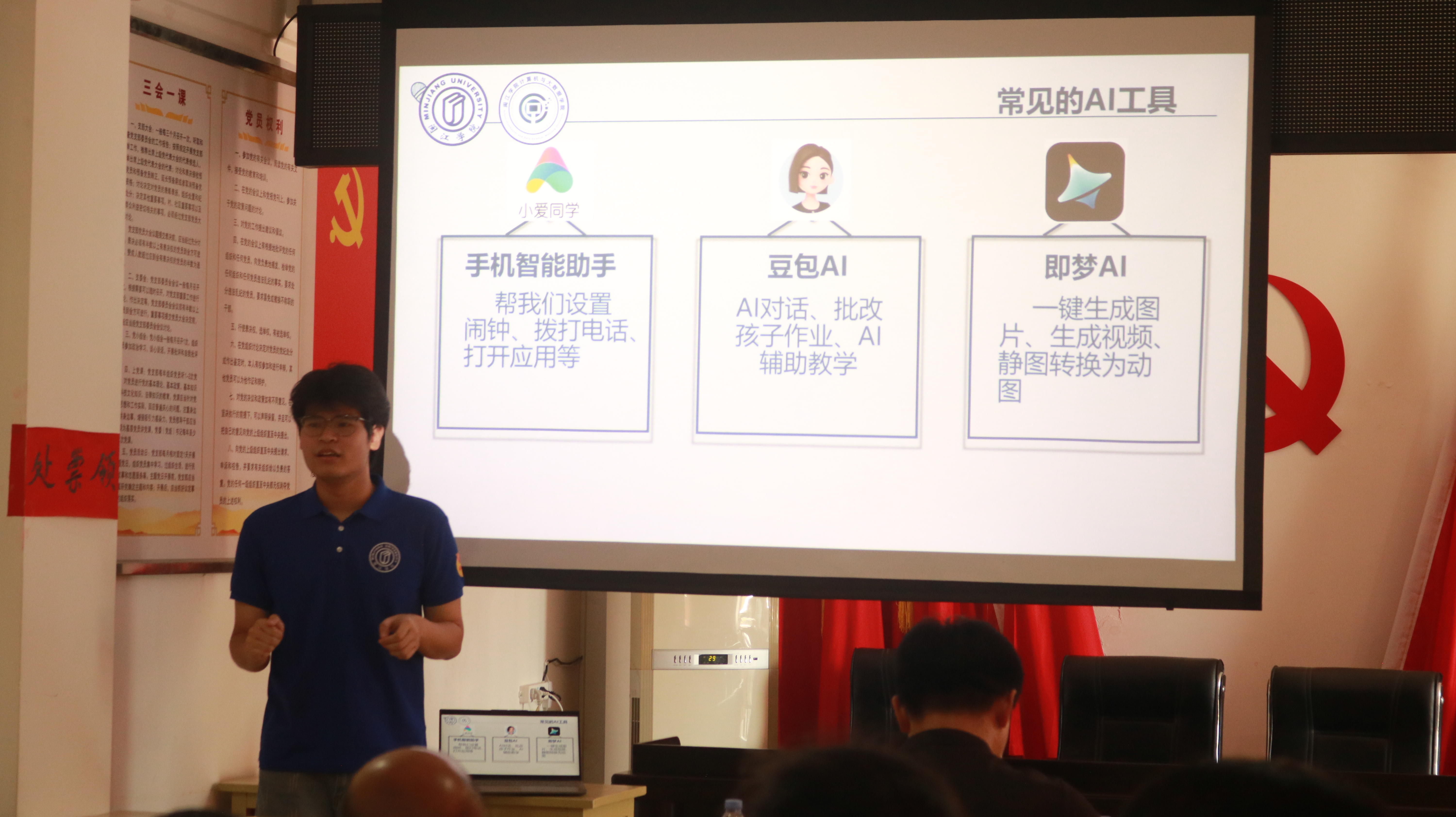 在吾中村党群服务中心,AI时光修复站”社会实践活动正式启动。实践队员们为村民带来AI科普讲座,并开展图片修复活动。