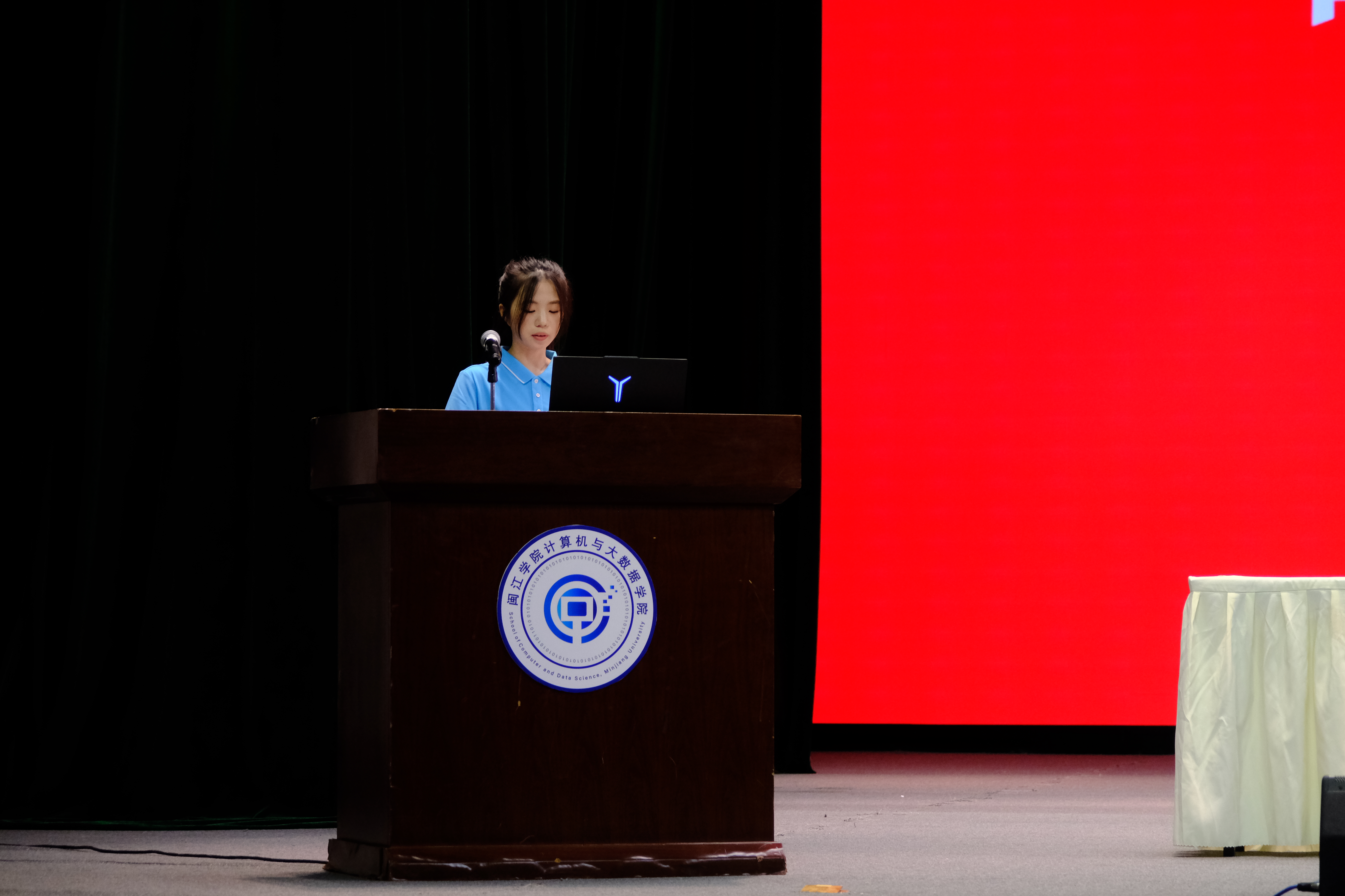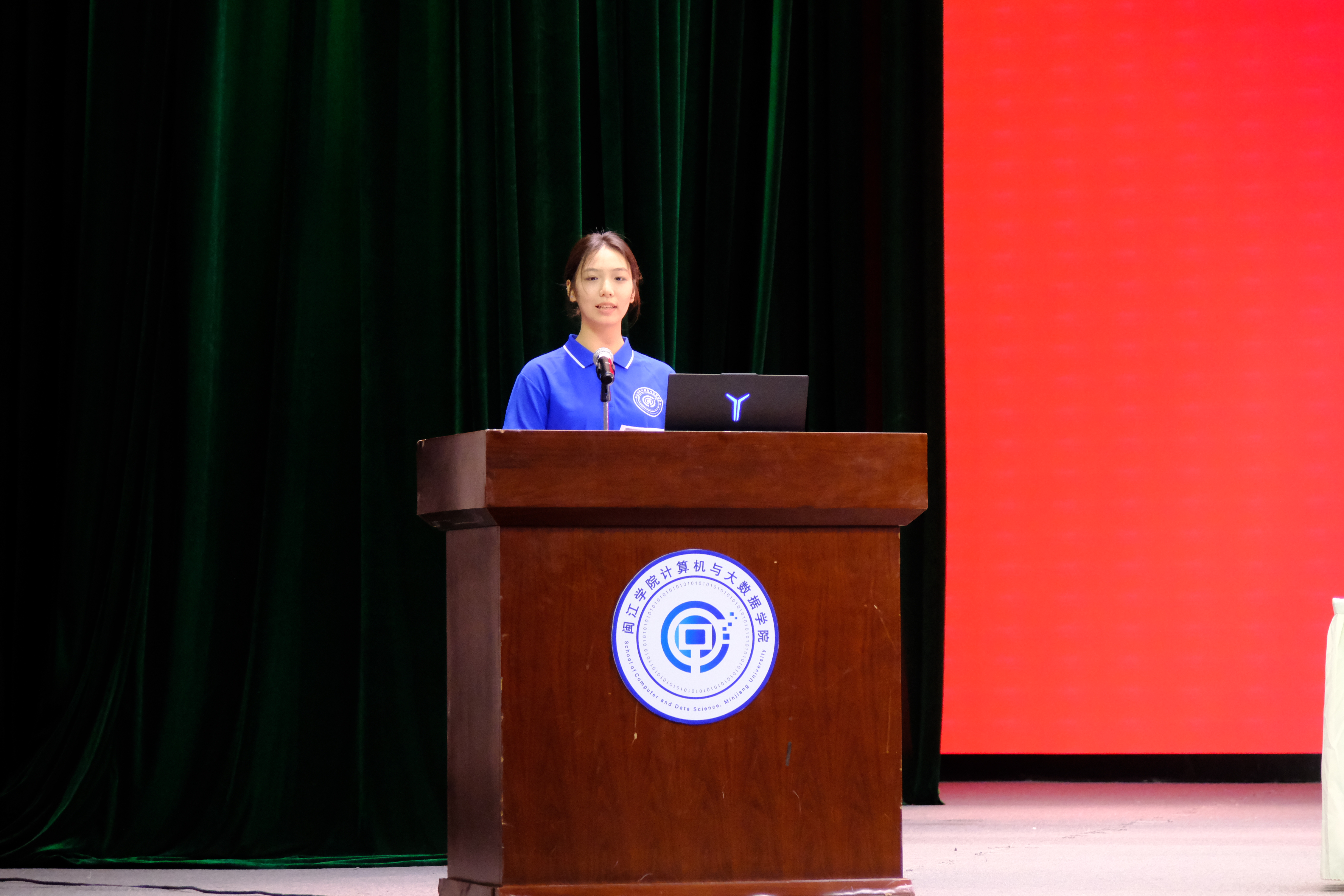 2023级计算机科学与技术专业的唐诗琦同学代表全院向2025级新生表达了热烈欢迎和诚挚祝福。她结合自身专业学习与实践经历,分享了从课堂算法到项目实战、从志愿服务到社会应用的成长体会。她鼓励新生扎实学习、勇于实践、投身服务,将个人成长融入时代发展,用代码书写青春担当。