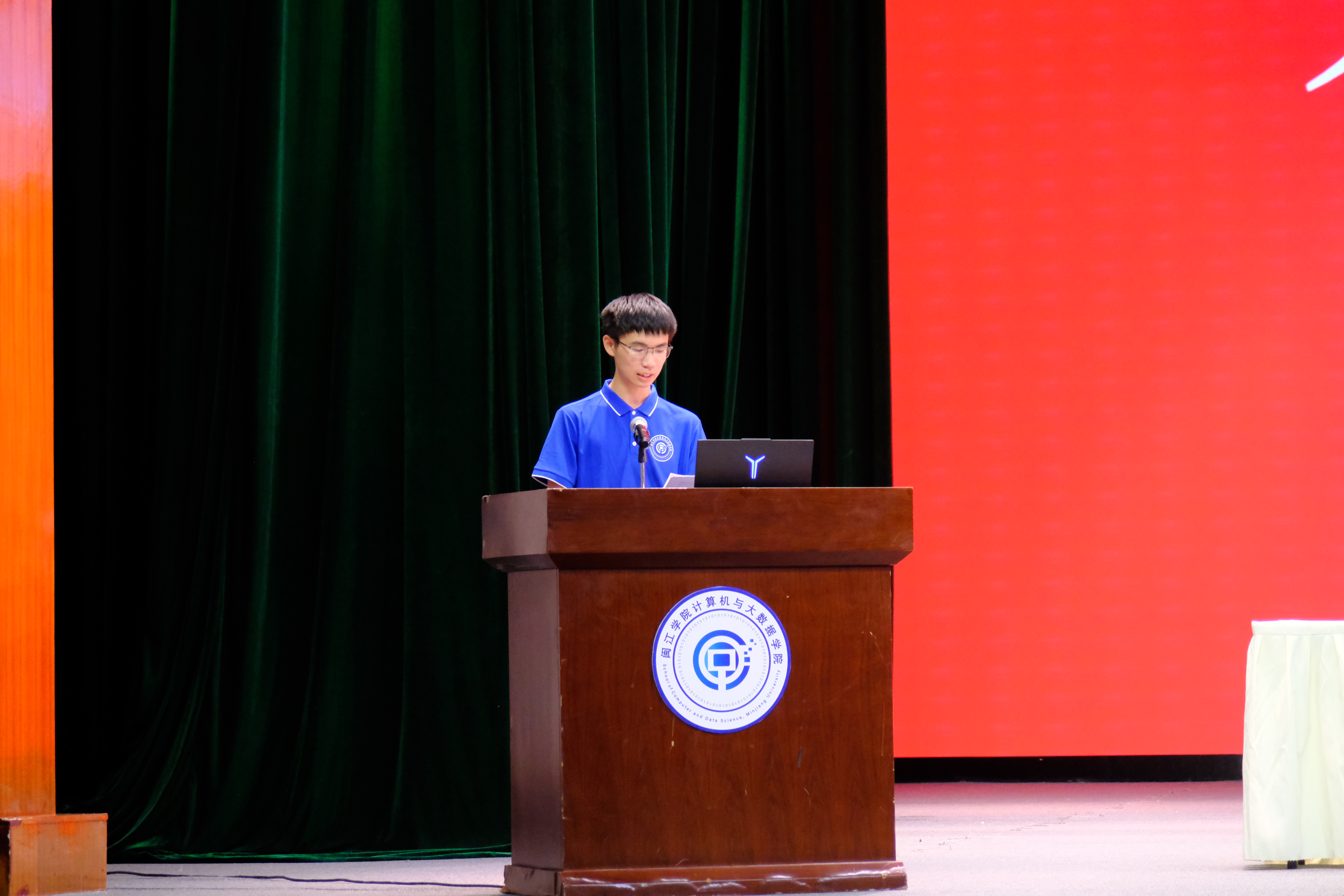 2025级软件工程专业的陈奕齐作为本科生新生代表上台发言。他表达了对大学生活的期待,对专业发展的认同,号召同学们在大学四年的时光中找到人生热爱的方向,深耕计算机领域,投身科技报国之路。