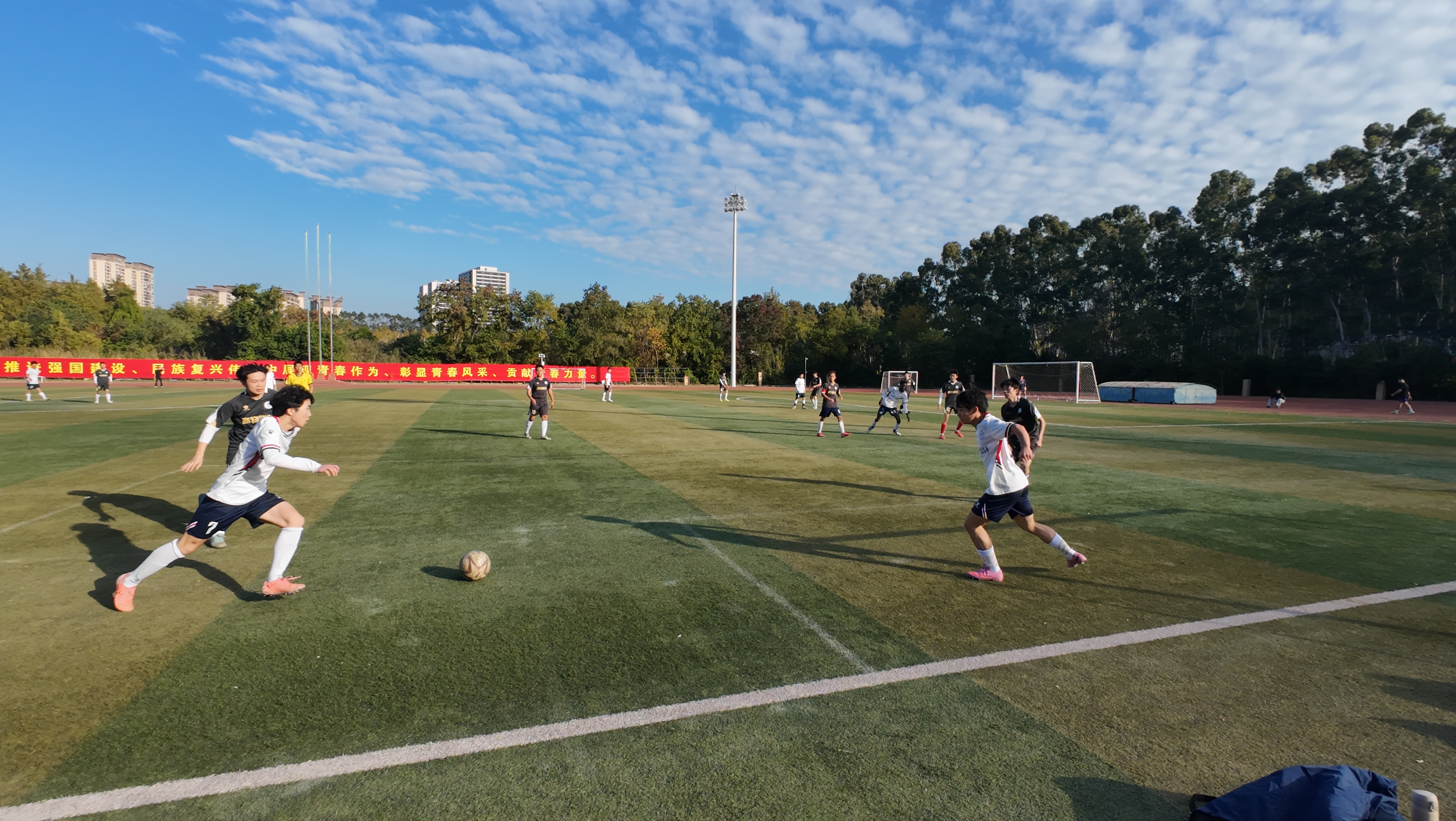 最令人热血沸腾的当属决赛的巅峰对决。比赛伊始对手便发起猛攻,我院守门员沉着扑救,多次化解危机。随着比赛推进,对手攻势更盛,我院队员众志成城,中场球员积极拼抢拦截,后防线紧密配合筑牢防线。关键时刻,我院队员林宏毅抓住反击机会,带球突破多名防守队员直插对手腹地,迫使对手犯规,为我方赢得点球。马昊文顶住压力,点球命中!这记关键进球让我院以1:0锁定胜局,成功捧杯。