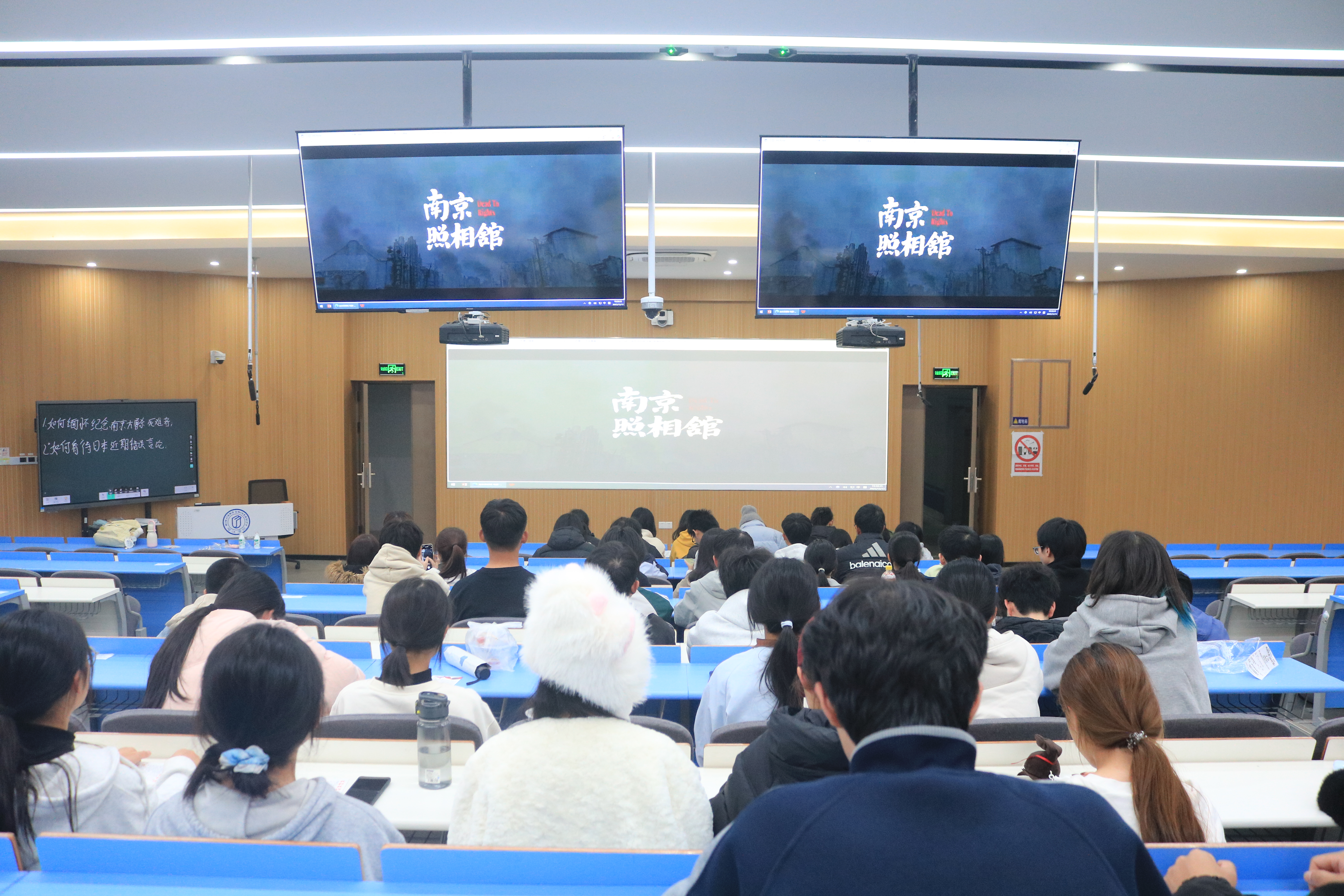 在线下观影活动中,同学们一同观看电影《南京照相馆》。影片以大量珍贵史料、幸存者口述与历史影像为载体,全景式还原了1937年12月13日南京沦陷后,侵华日军所制造的惨绝人寰的大屠杀惨案。影片中展现的那段黑暗历史让在场每一位观者内心受到强烈冲击。影片深刻揭露了侵华日军的野蛮暴行,也再一次警示我们,和平盛世来之不易,国家之痛、民族之殇绝不能遗忘。