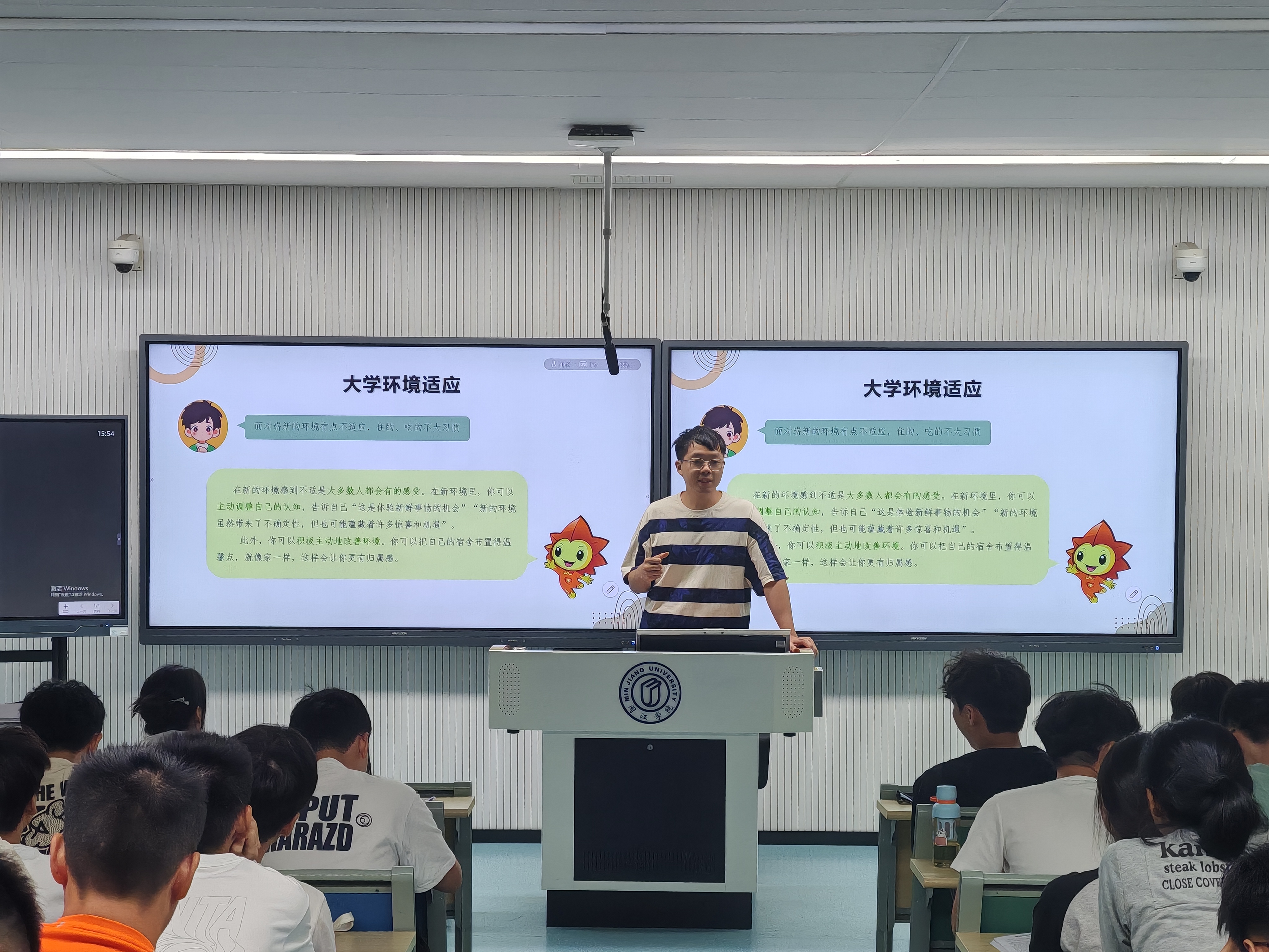 课程伊始,郑轲鹏老师结合新生环境陌生、人际不适、学习节奏调整等常见困惑,通过案例分享、互动提问,剖析适应期心理特点。针对人际建立、学住平衡等核心问题,他给出主动破冰、制定阶段目标、合理宣泄情绪等建议,引导新生正确看待心理波动,积极融入校园。
